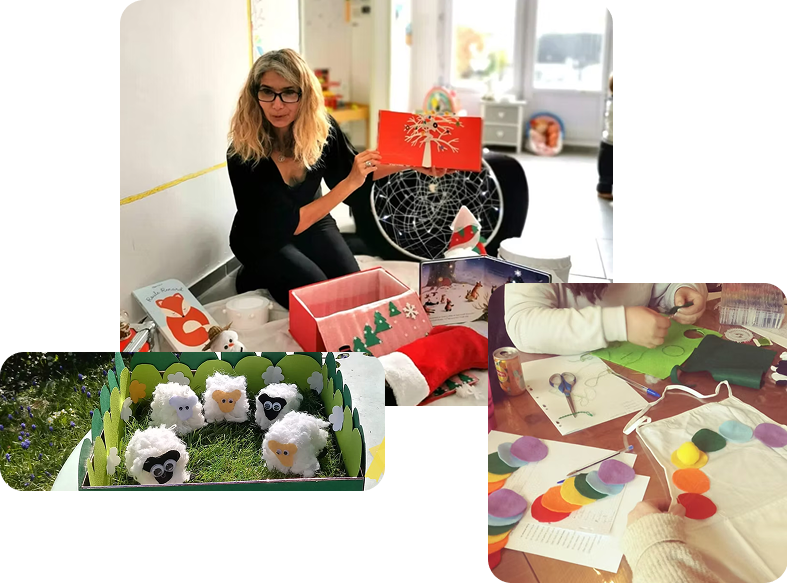 A l’occasion d’un anniversaire, d’un goûter entre amis ou d’une fête de famille, un temps d’histoires suivi d’un atelier les p’tites mains dans la boîte de Christine